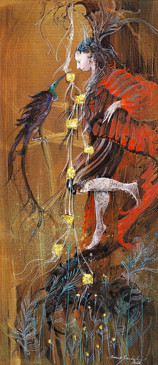 Original painting with hand applied gold leaf.