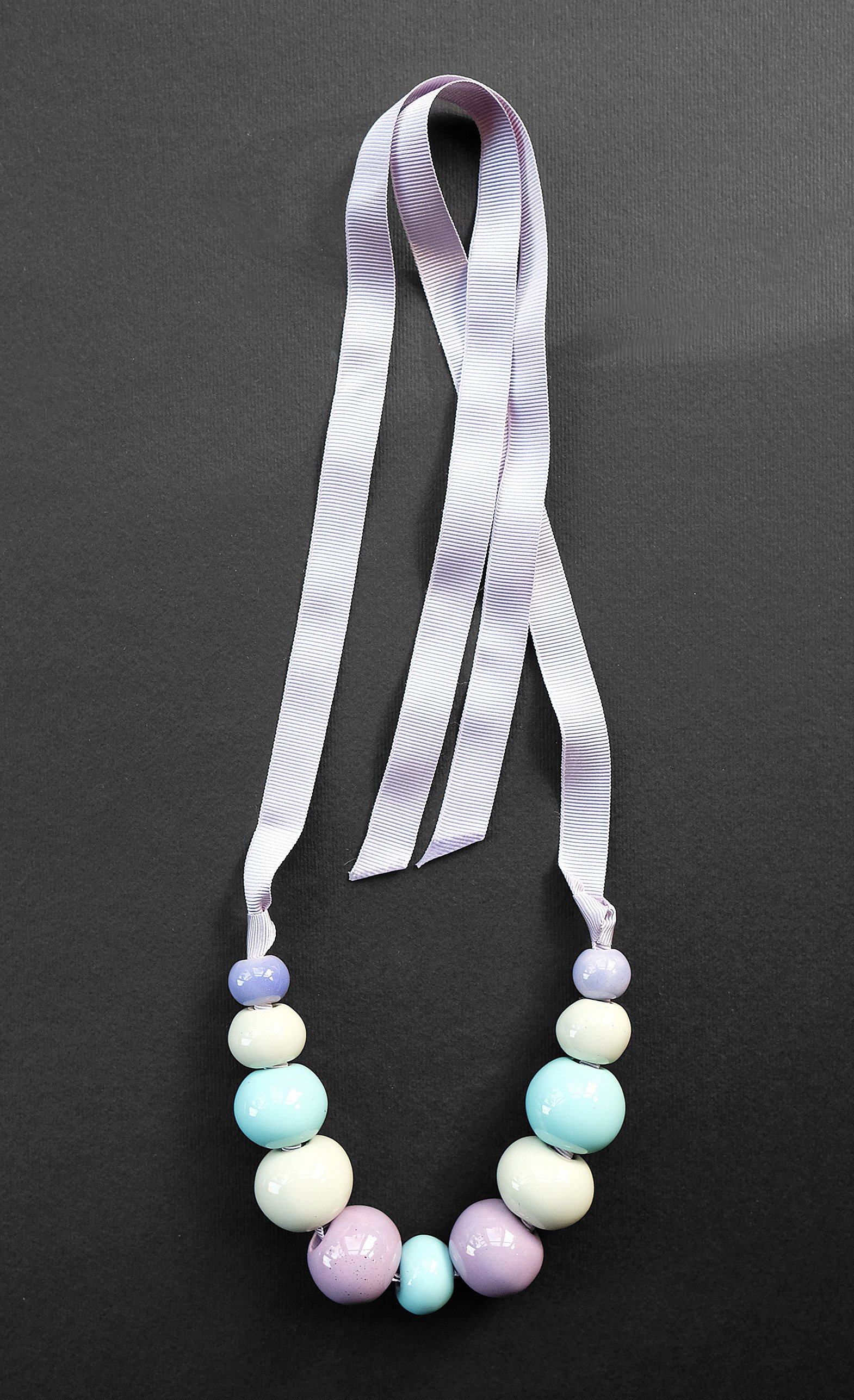 HANDMADE CERAMIC BEAD & RIBBON NECKLACE - PASTEL