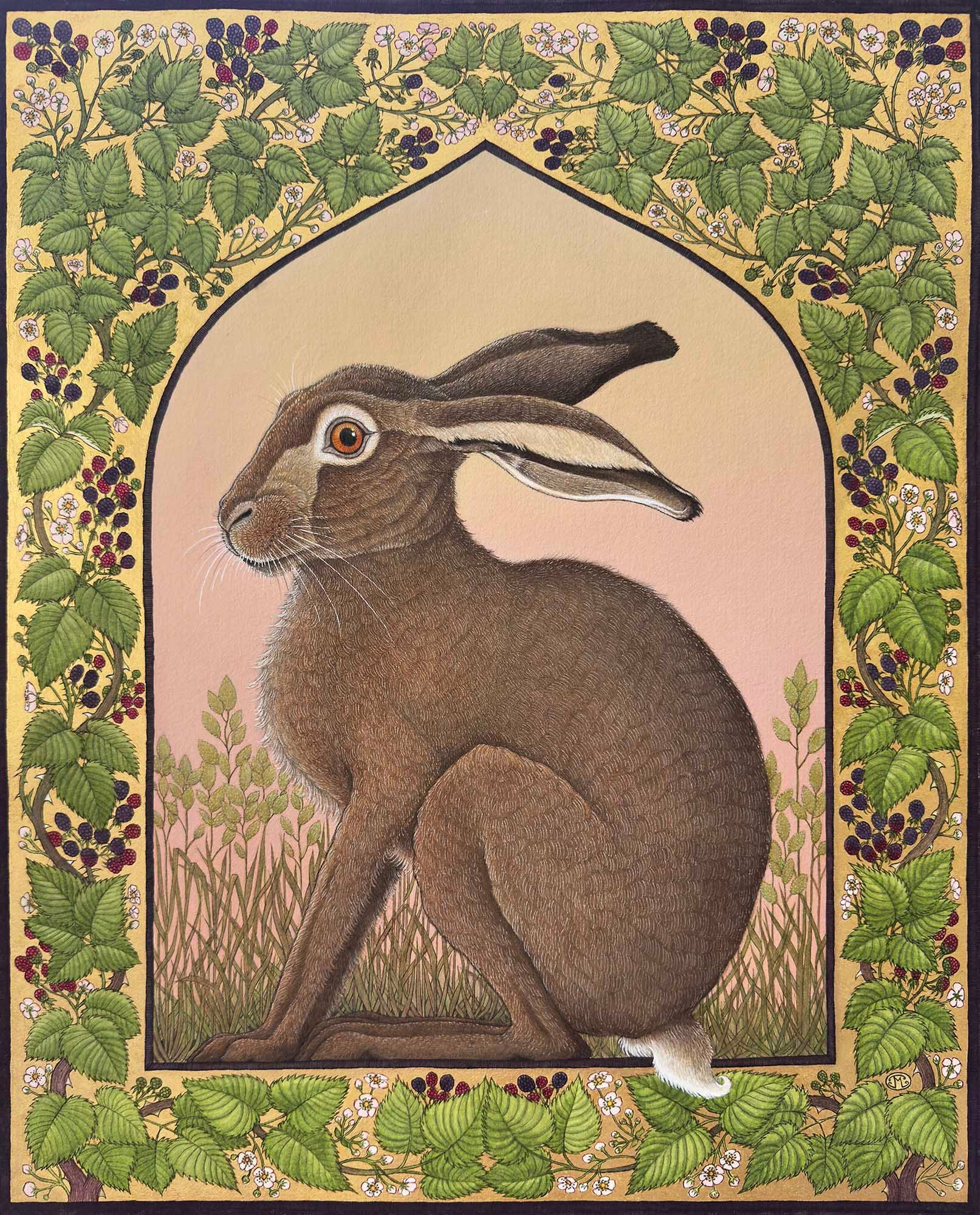 JENNIFER MILES - 'BRAMBLE HARE' - ORIGINAL PAINTING WITH GOLD LEAF